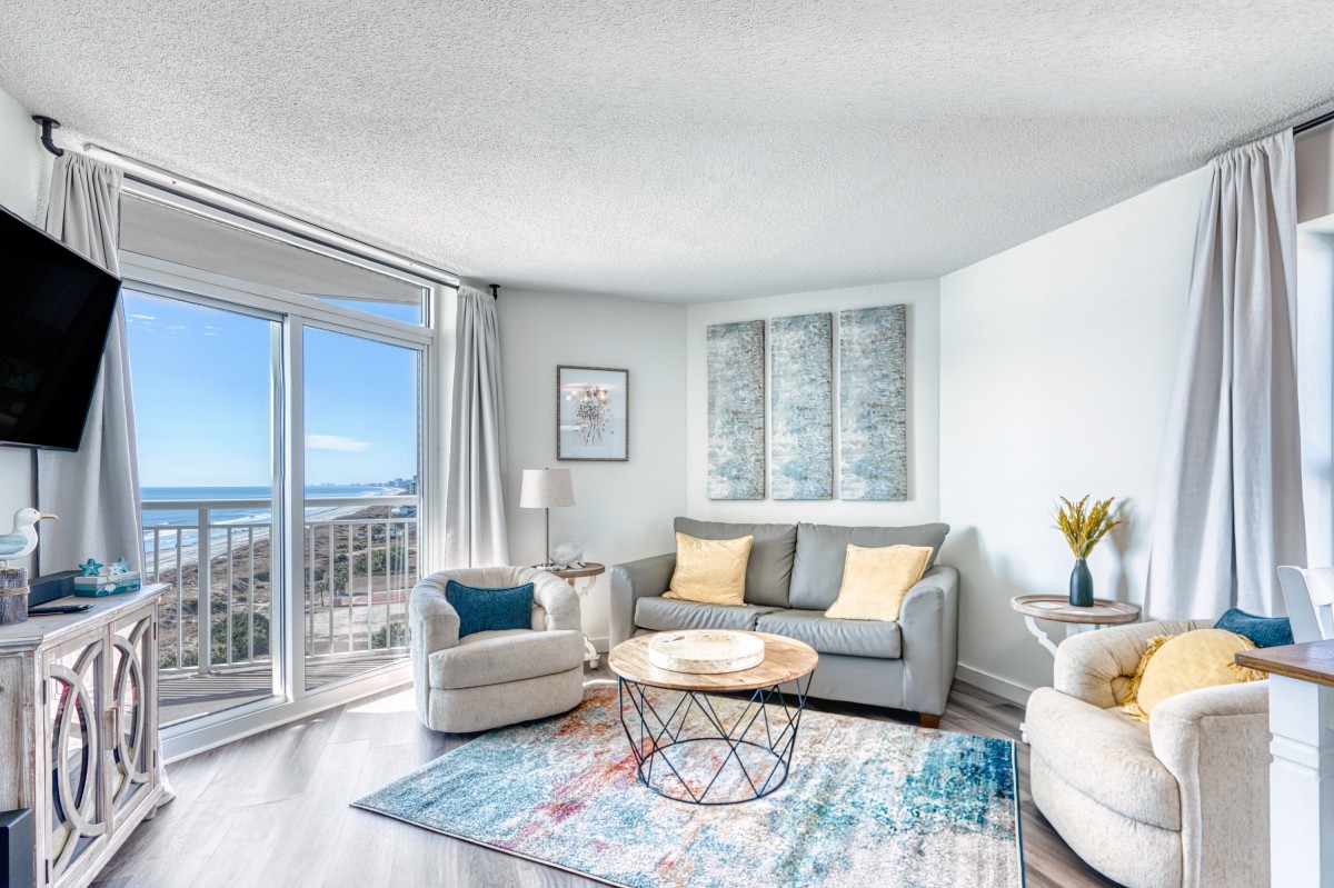 A feeling of utter contentment will wash over you like a powerful Atlantic wave as comfortable furnishings, and charming neutral décor welcome you into this cozy coastal condo. To make your stay as comfortable as possible, Bay Watch III 1041 offers a myriad of convenient amenities. Keep your clothes looking their best using the in-unit washer and dryer. Enjoy the sleep of champions on complimentary linens. Drink-in the all-encompassing majesty of an East Coast sunrise while drinking your morning coffee or tea on the unit’s private, oceanfront balcony.