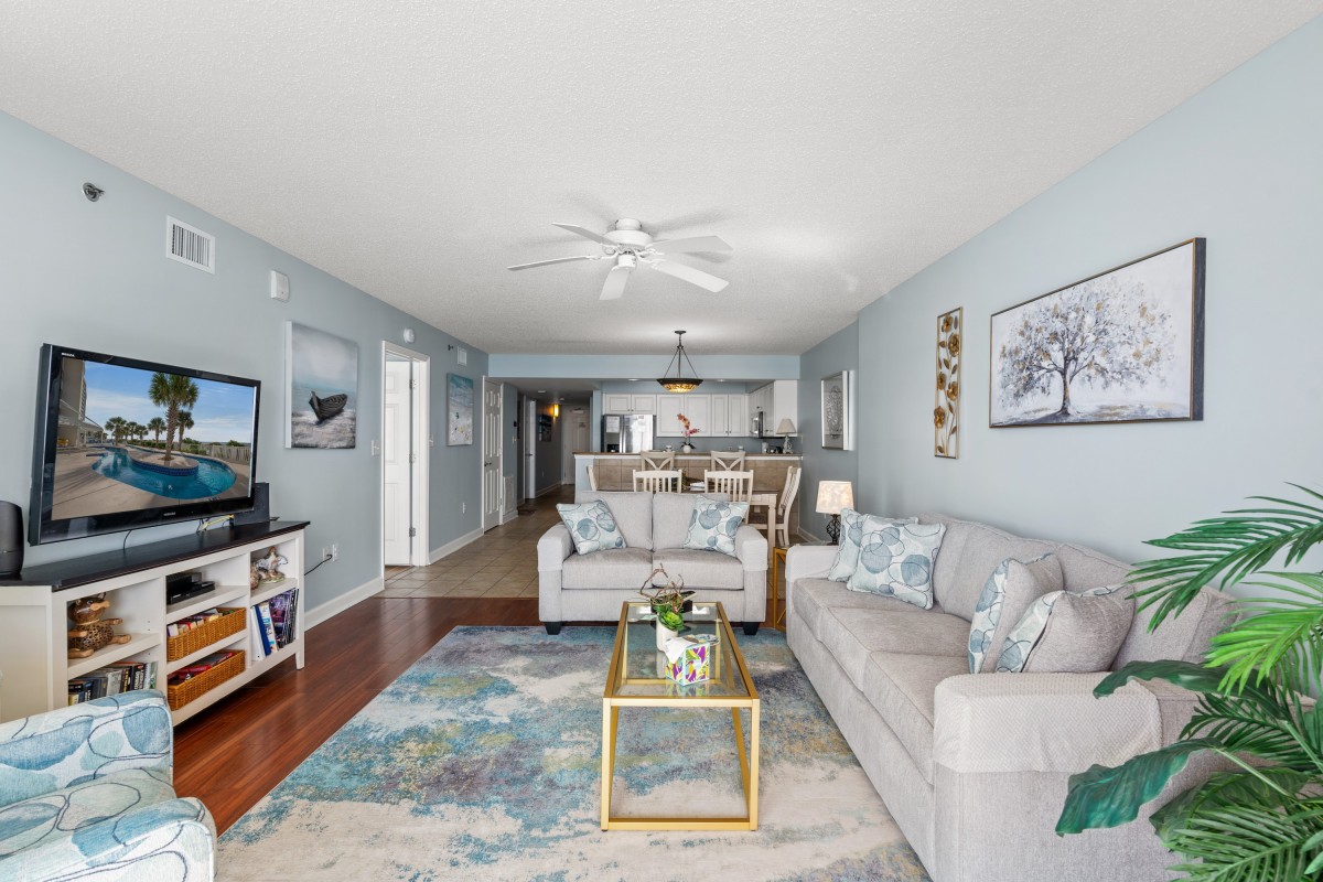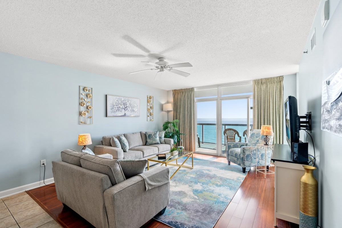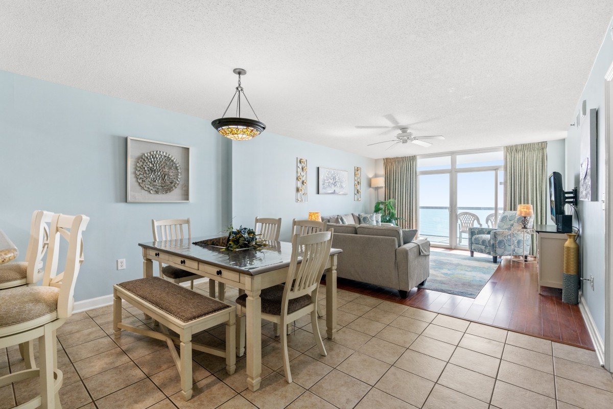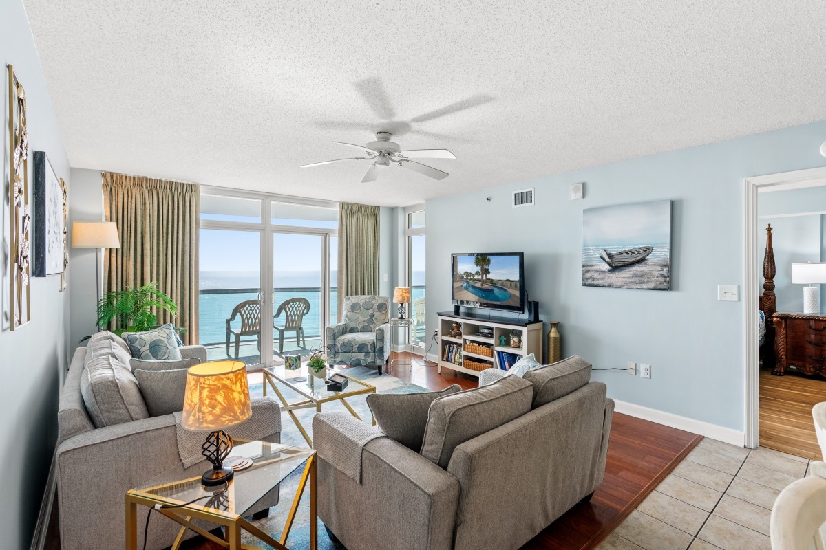 Plush furnishings are what you'll enjoy at Bluewater Keyes 1005. This oceanfront condo is superbly decorated. From the full kitchen to the balcony view, Bluewater Keyes 1005 is a North Myrtle Beach haven for families who prefer the finer things in life. Bluewater Keyes 1005 offers a breathtaking view of the ocean and pool deck. Relaxation is the name of the game at Bluewater Keyes 1005. And there are many ways to rest easy during your North Myrtle Beach vacation at your very own three-bedroom oceanfront condominium. Perched towards the top of the Bluewater Keyes tower, condo 1005 is a sight to behold. Furnished to be your home-away-from-home, Bluewater Keyes 1005 boasts a kitchen, living room with flatscreen CCTVS and a gorgeous oceanfront balcony. Throw open the sliding glass door that runs from the floor to the ceiling and let in the Atlantic Ocean breeze and salt-scented air. Hearing the cry of birds and waves crashing ashore just might lure your family outside where you can sit in a chair and gaze outward, looking miles offshore to the point where the blue sky meets the ocean. This is a wonderful place to read your favorite book or to drink a cup of coffee early in the morning.