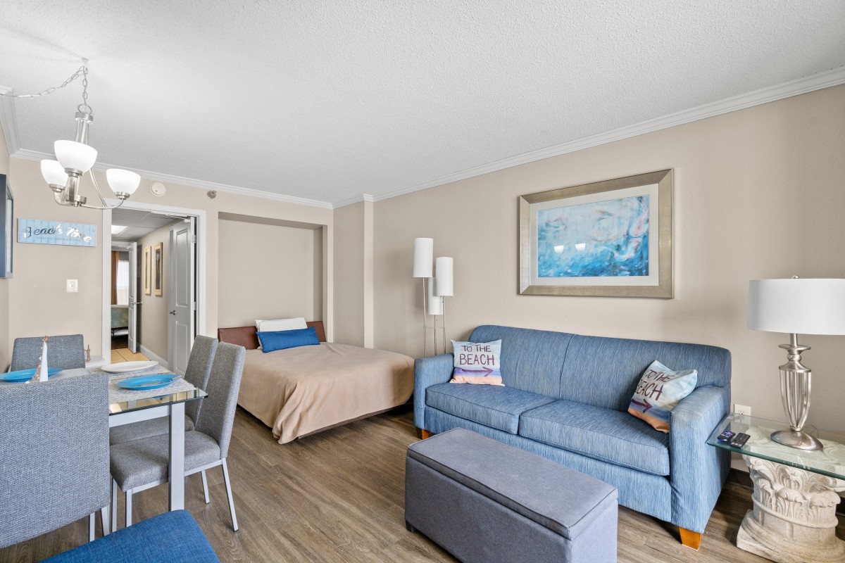 Find out what it feels like to live by the beach at the Caravelle Resort. Caravelle Resort 1538 is a one-bedroom, one full bath condo that is part of an oceanfront resort. This unit is perfect for a romantic getaway or a quick vacation. The interior is warm and inviting. The condo includes a full kitchen as well as a private balcony. Everything you need for the perfect vacation is included when you stay at Caravelle Resort 1538.