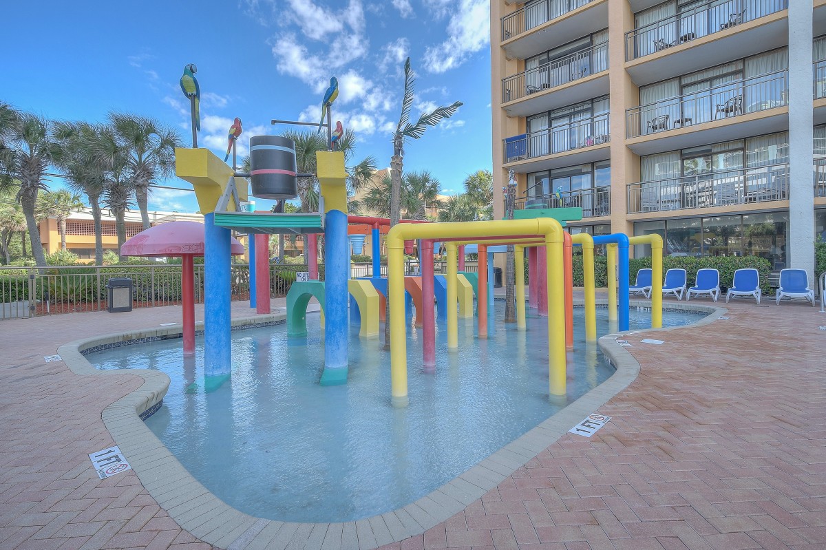 The amenities at Caravelle Resort are plentiful and are sure to enhance your vacation. The resort has nine pools in all. Enjoy the large outdoor swimming pool, which is heated year-round. The outdoor hot tub is the perfect spot to rest weary muscles. There is a lazy river for adults and kids to enjoy alike. The kiddie area has mushroom waterfalls, water buckets, and a shallow pool. All ages will enjoy the onsite game room with skeeball and arcade games. Other amenities include a business center, an onsite laundry facility, an outdoor bar and grill, and a small grocery store. Everything you need is at the resort.