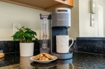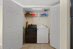 The high vaulted ceiling makes the living room even more inviting. Light colors and plenty of windows are welcoming and will put you in a relaxed state of mind. Comfortable furniture sits around a large flatscreen TV. The kitchen and dining area are part of an open floor plan, so you can watch the kids while you cook or be part of the conversation without feeling left out. You will have no trouble cooking meals and snacks in the full-sized kitchen with features such as a dishwasher and Keurig coffeemaker. Also, enjoy amenities such as central heating and air and an in-unit washer and dryer. The washer and dryer are tucked away by the kitchen so they won’t bother others with noise. Feel free to throw a load in the dryer before bed and get a good night’s sleep.
