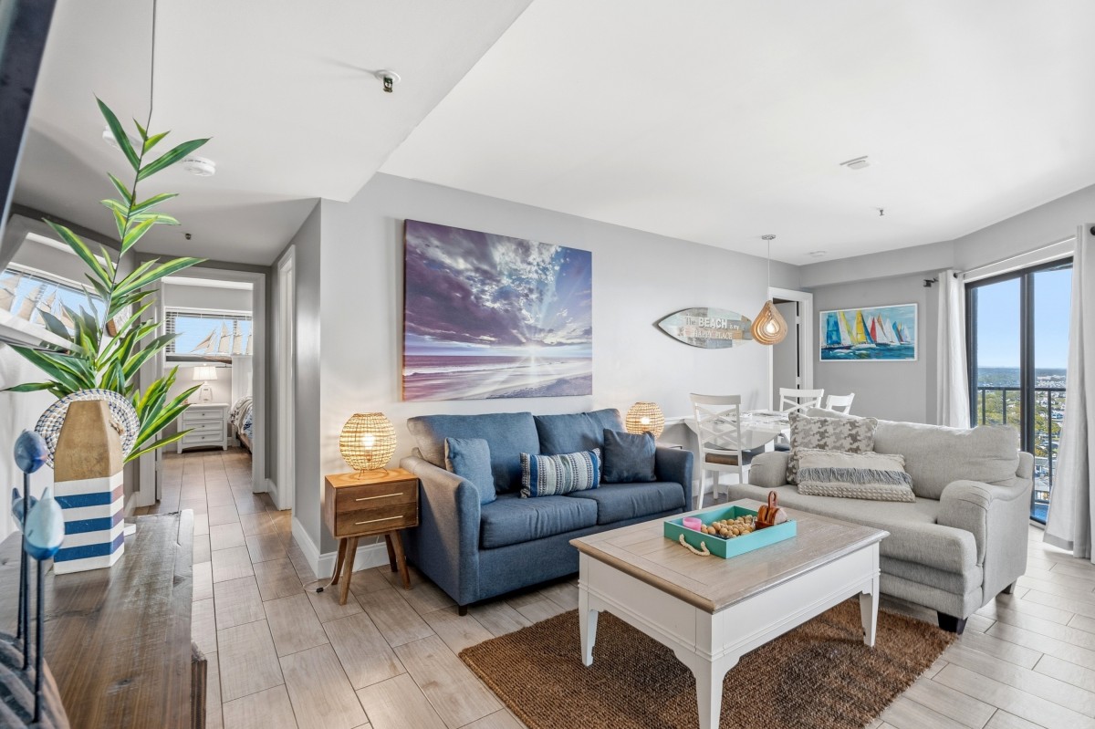 The condo was very nice well appointed. The beds were very comfy even the sofa bed. The ocean view is awesome. The condo itself was small but was not a problem for this family of 5 we spent most of our time on balcony and exploring Myrtle beach.