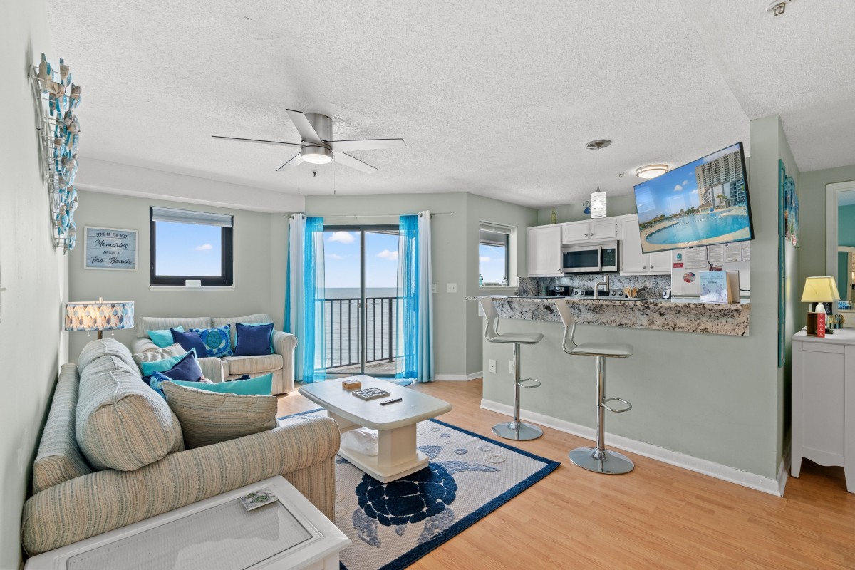 The Condo is so bright and beachy with it's Sea Turtle decor. There is a ton of storage and everything you need for a great beach vacation. The sunrise from the primary suite and balcony were absolutely stunning. We were there for the full moon and it was gorgeous over the ocean. Absolutely loved the Quarter Deck bar and grill that featured live music each day and several evenings had karaoke. The grounds were very nice and there are several pools among other activities included at the resort. The laundry facilities were very clean and easy to access. I will definitely be back!
