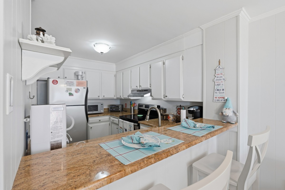 Come enjoy your accommodations at Ocean Pier IV 340 a third floor vacation rental. Enjoy a fully loaded, beautiful kitchen in this vacation rental with full-size modern appliances for your convenience. Prepare your favorite meals and dine any time on the lovely oceanview balcony, where you can count the millions of stars twinkling over the tranquil ocean.