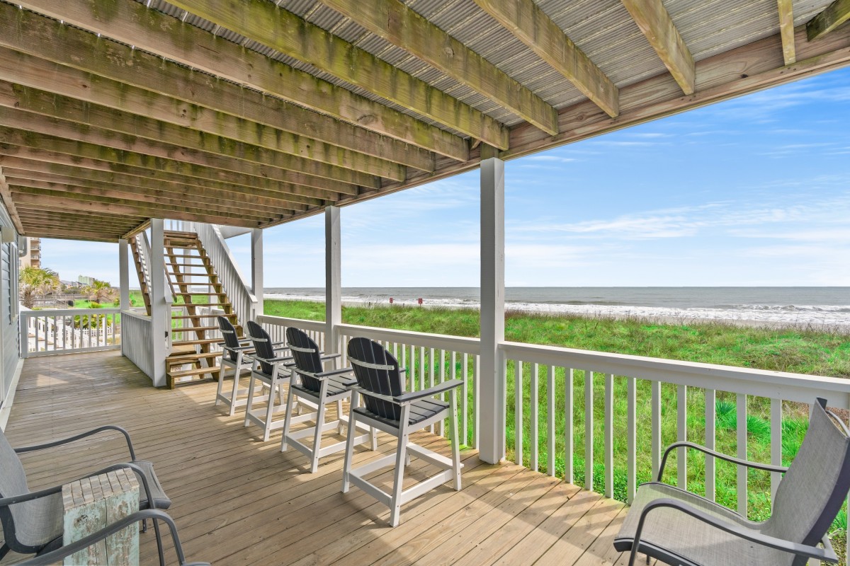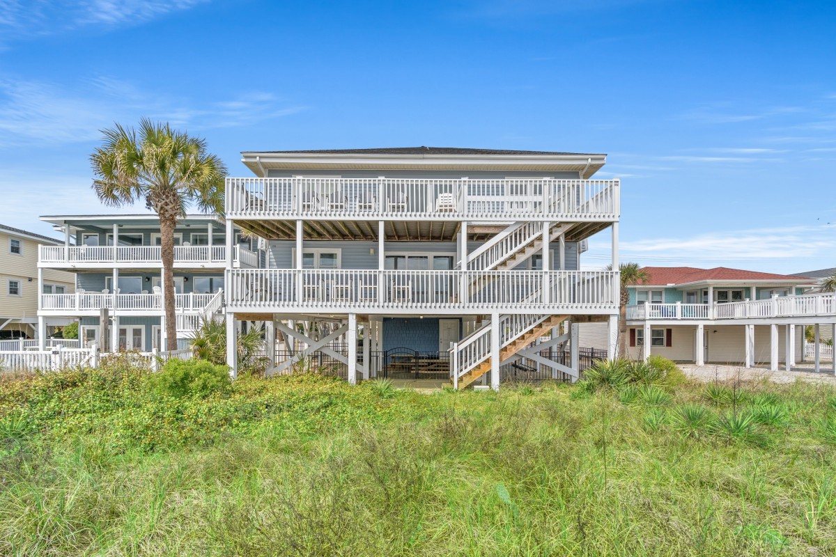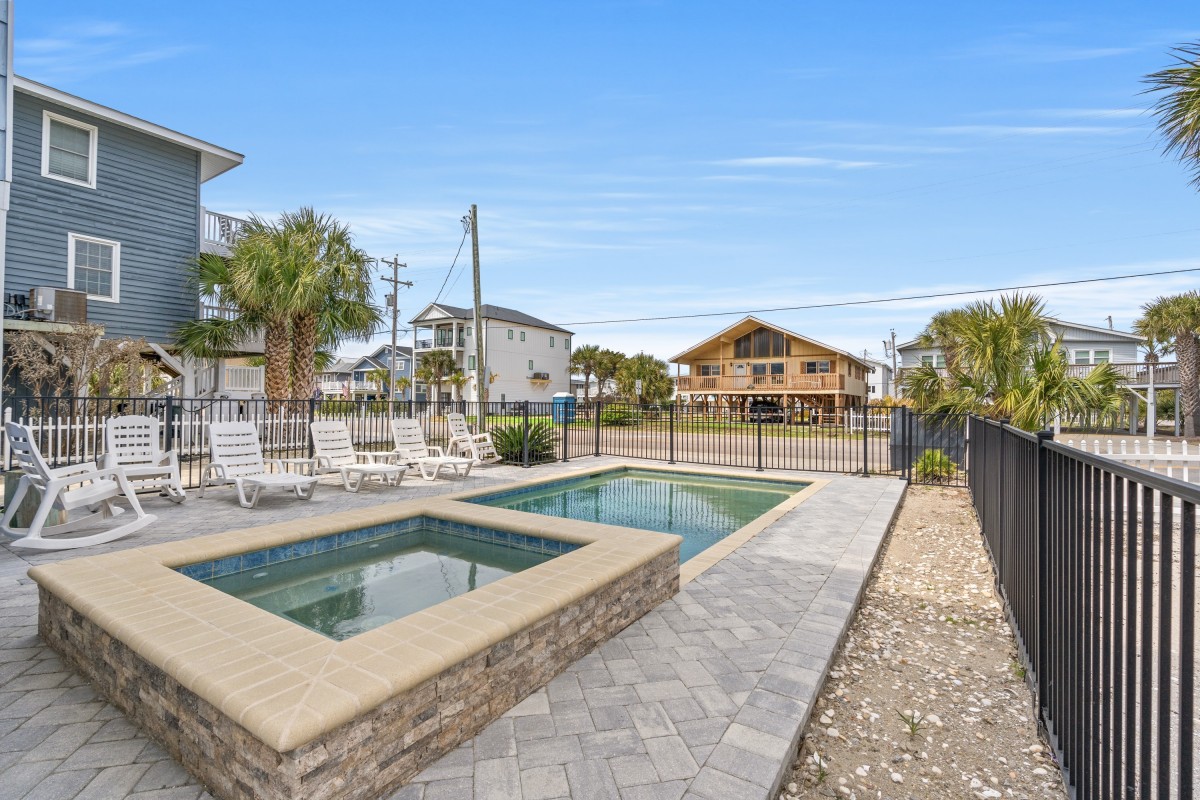 Guests will enjoy the panoramic sunrises and sunsets with unobstructed views of the beach, the ocean, and the famous Cherry Grove Fishing Pier from either of its two spacious oceanfront balconies. The two street side balconies overlook the built-in pool and hot tub. The two oceanfront great rooms feature large dining and spacious living rooms that easily accommodates all of your guests. The spacious third floor kitchen comes fully equipped to host those large family meals and the modern stainless-steel appliances and granite countertops make cleanup easy and fast. There is even a mini kitchen on the 2nd floor for easy access of a quick snack or cold drink. A game of foosball is available to keep you entertained at the end of your long day at the pool and beach.